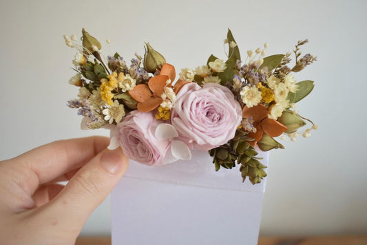 Discover my collection of handmade floral wedding accessories. Each piece is carefully crafted with dried or artificial flowers, ensuring lasting beauty for you special day.