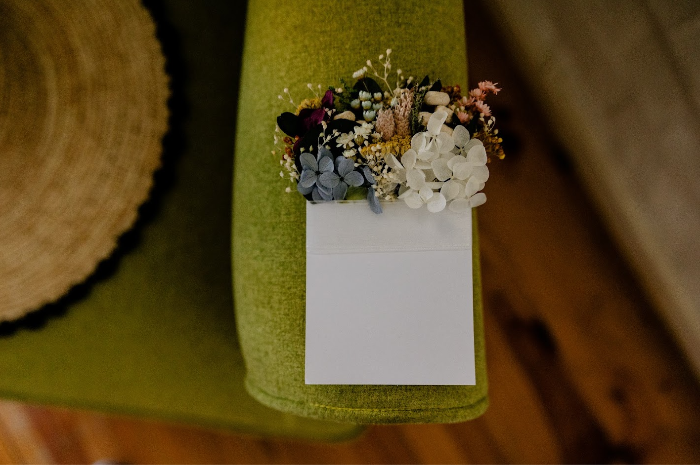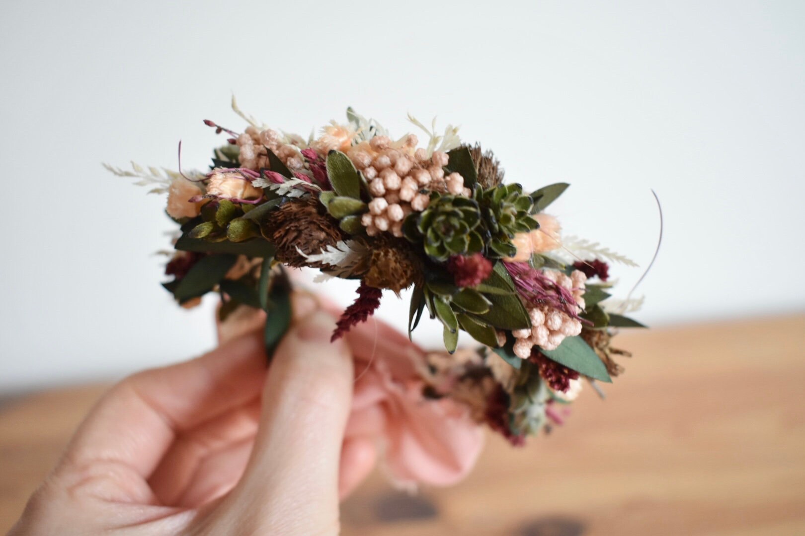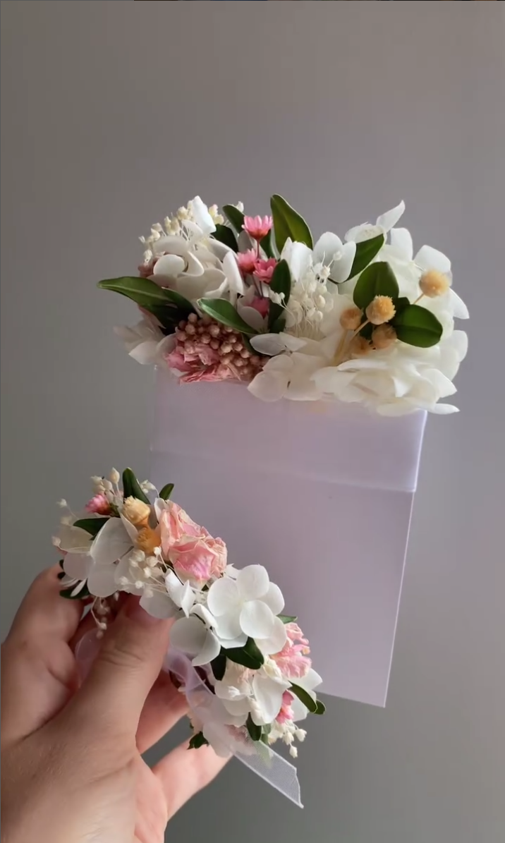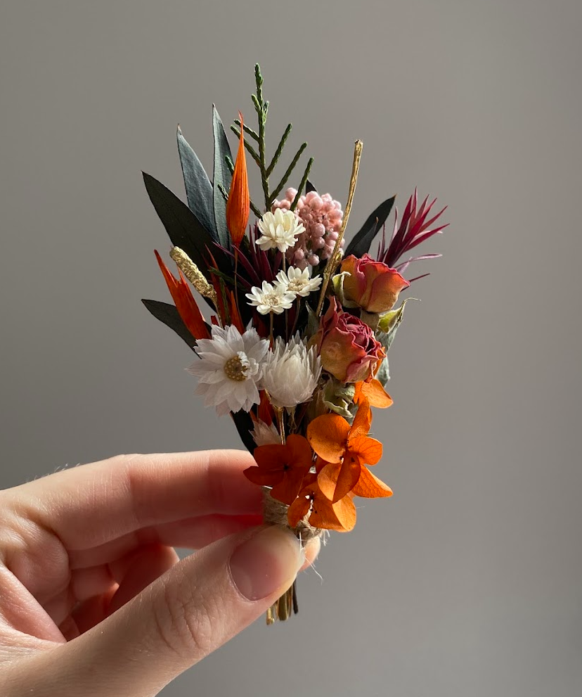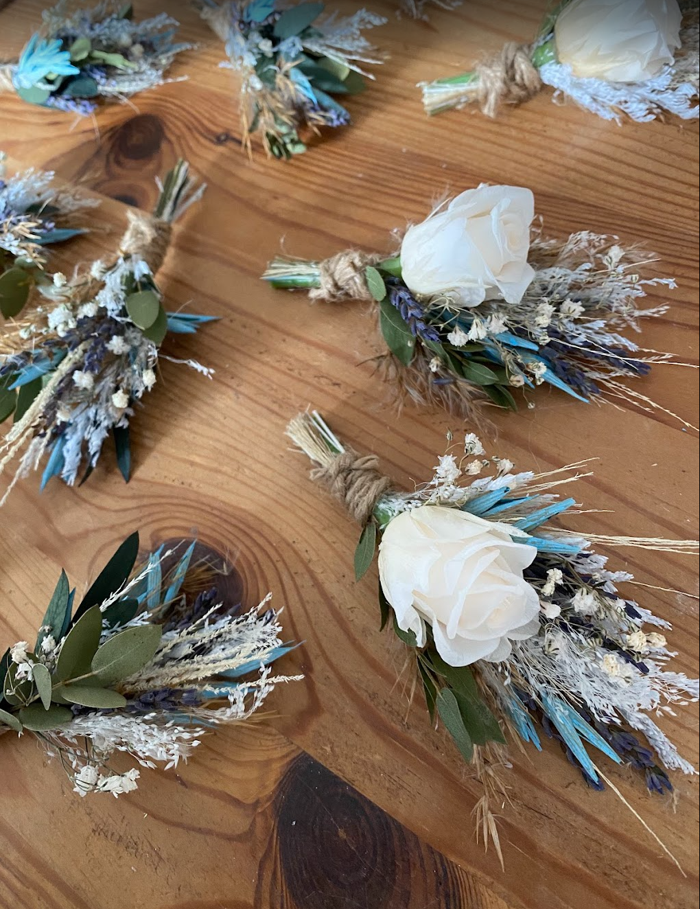My pieces are created with dried, preserved or high-quality artificial flowers—perfect for adding a lasting touch to your special day.