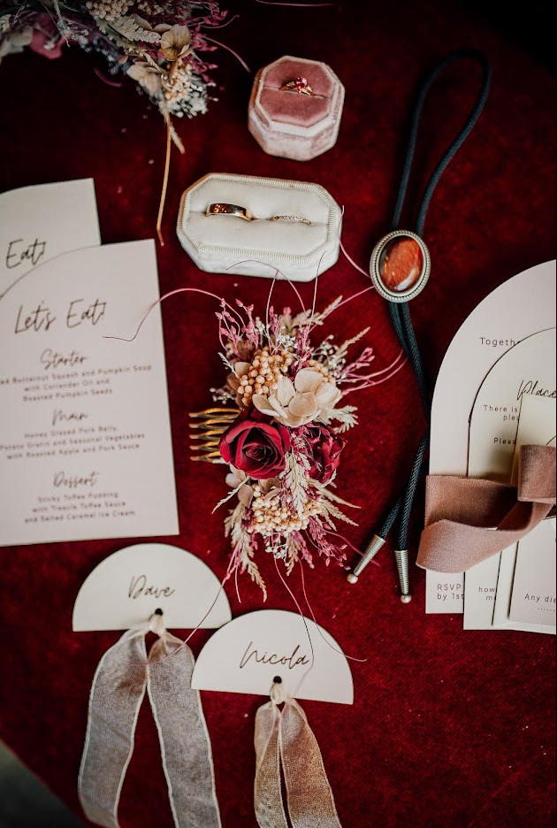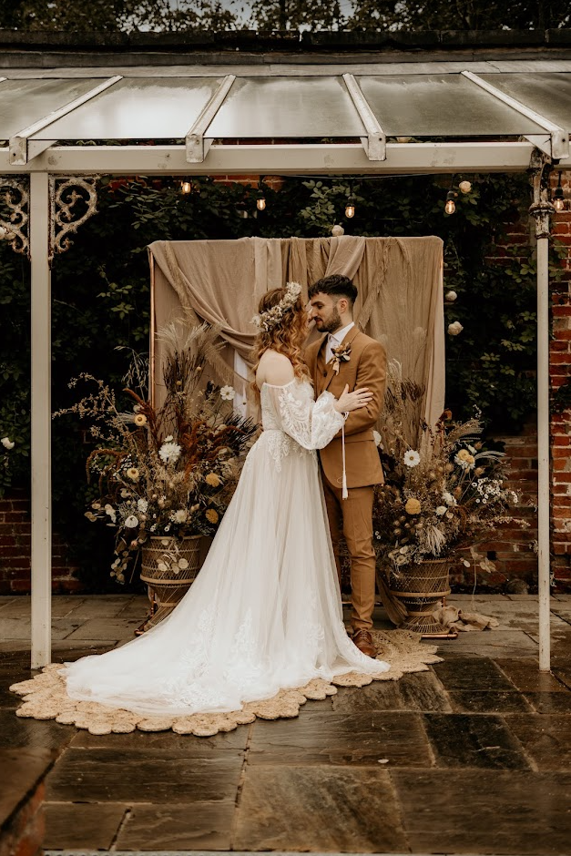 Venue bennetts_willow_barn_weddings Photographer dearestlovephotography Concept, Stylist & Decor bobbiwrenevents Florist thegreenroom.florals Cake crumbsmakecake Banner daydreamer_creative_studio Stationery bluebellpressuk Dress pearlandevebridal Flower Crown somethingnewflorals Jewellery katedawsonjewellery Hair & Makeup Artist cmlh__makeup Content Creator the_emilyedit Jacket & shirt brigdensweddings