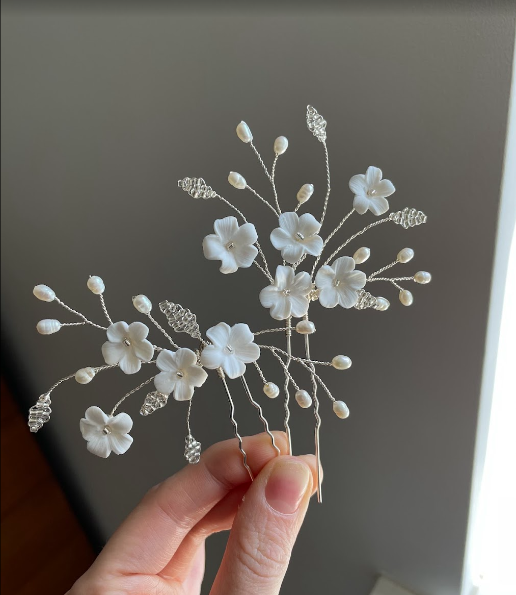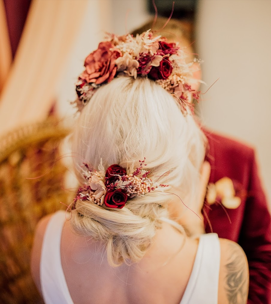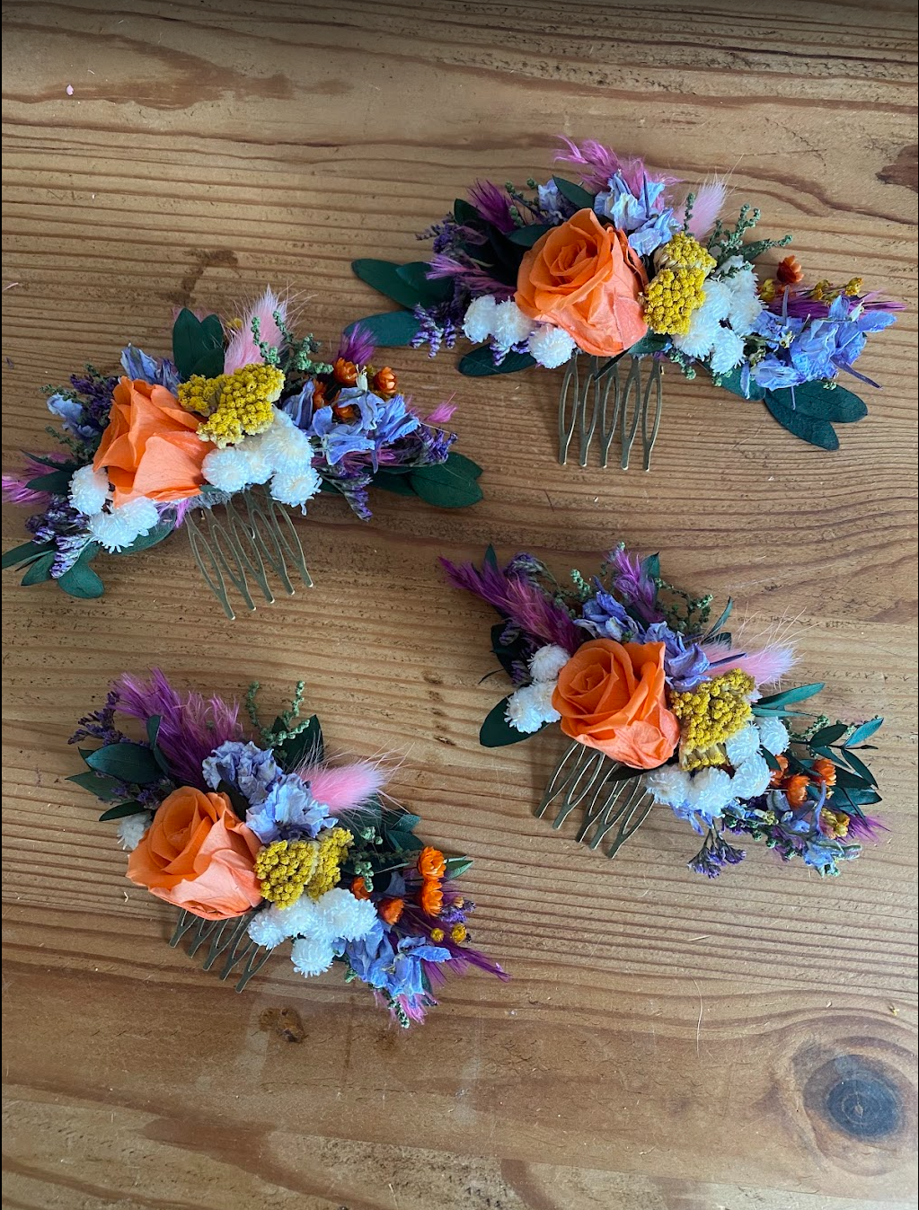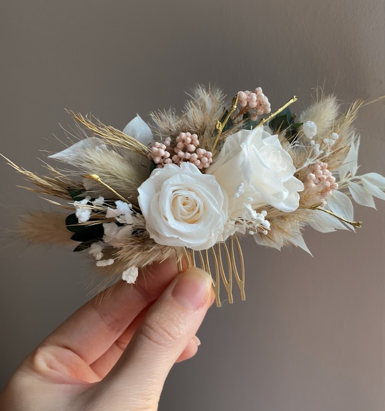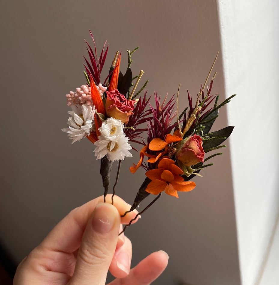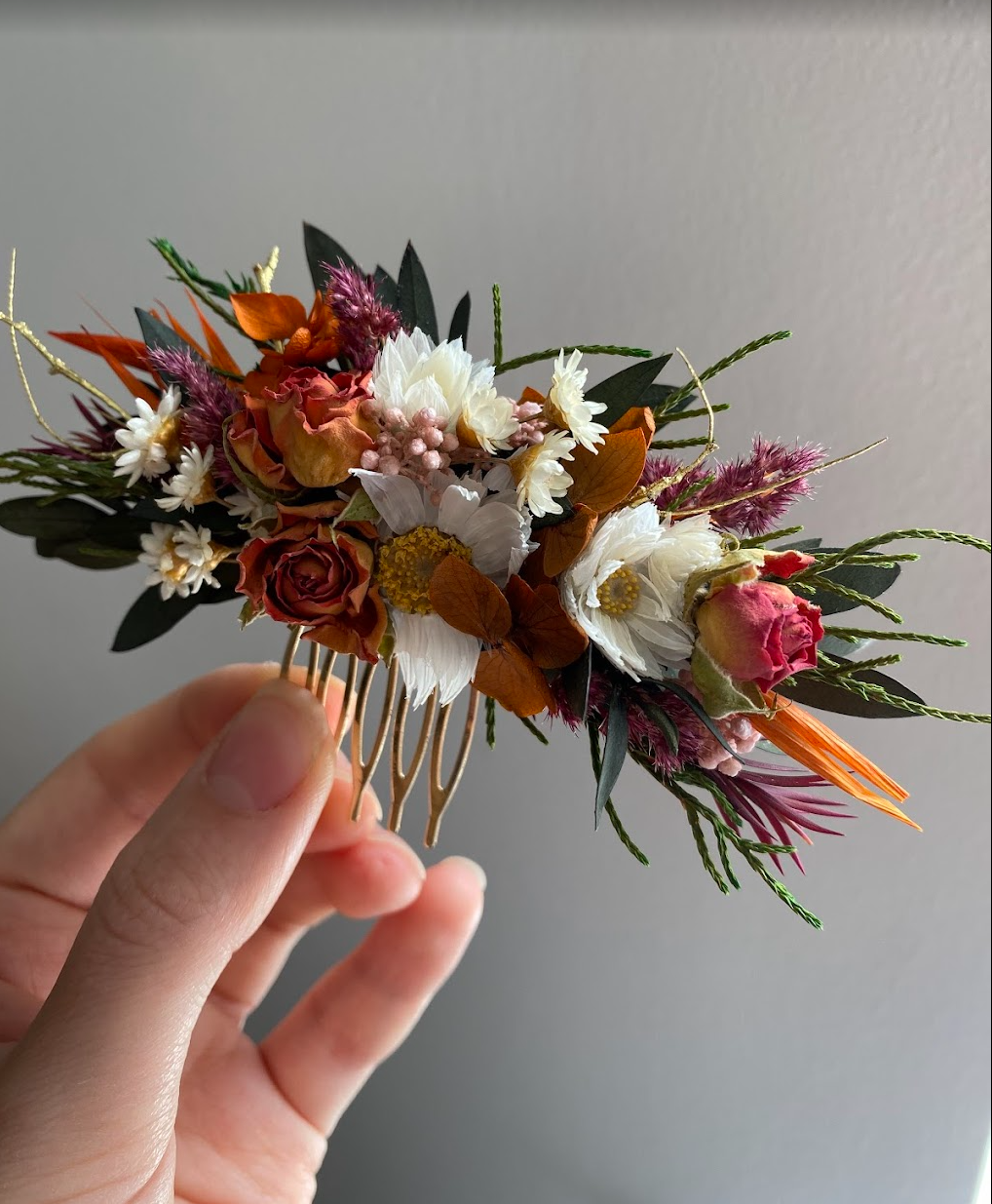 Floral hair accessories are a beautiful way to elevate your look. I work with dried, preserved, artificial, and handcrafted clay flowers to create long-lasting pieces. I offer a wide range of styles to suit all tastes, including flower crowns, headbands, hair pins, clips, vines, and combs. Whether you’re after something subtle and delicate or a bold statement piece, each accessory is made to reflect your personal style. All items can be customised to suit your colour palette, flower preferences, and size requirements. Hair clips are especially popular for kids, adding a sweet floral touch without fuss. Whatever the occasion, I’ll help create a piece that feels just right for you. Each piece is thoughtfully made to complement your style and bring a little extra something to your special day.