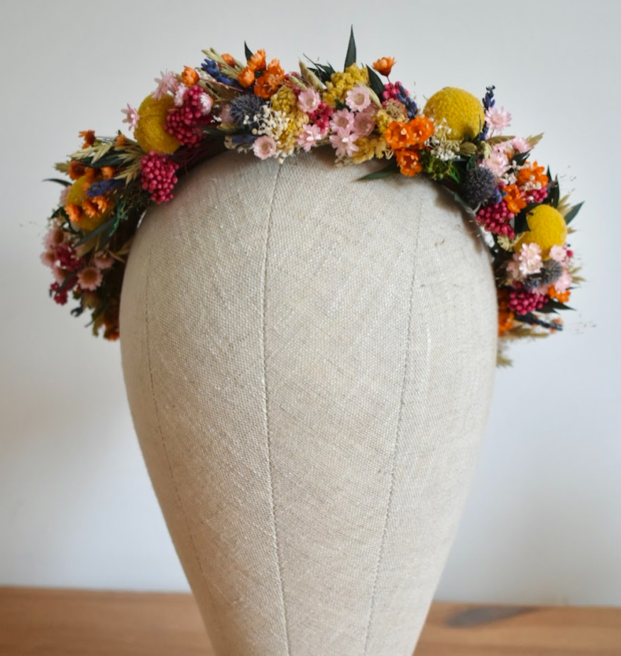I had a gorgeous baby flower crown made in custom colours for my six month old to wear at our wedding. It was beautifully made, and very comfortable for her to wear. Delivery was fast, and it was well packaged. Thank you so much!