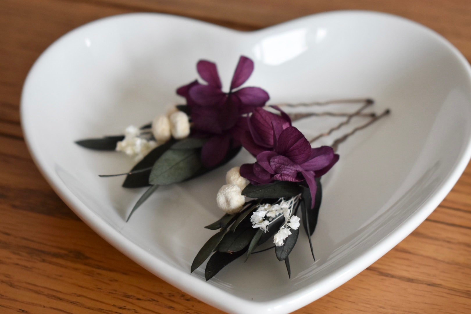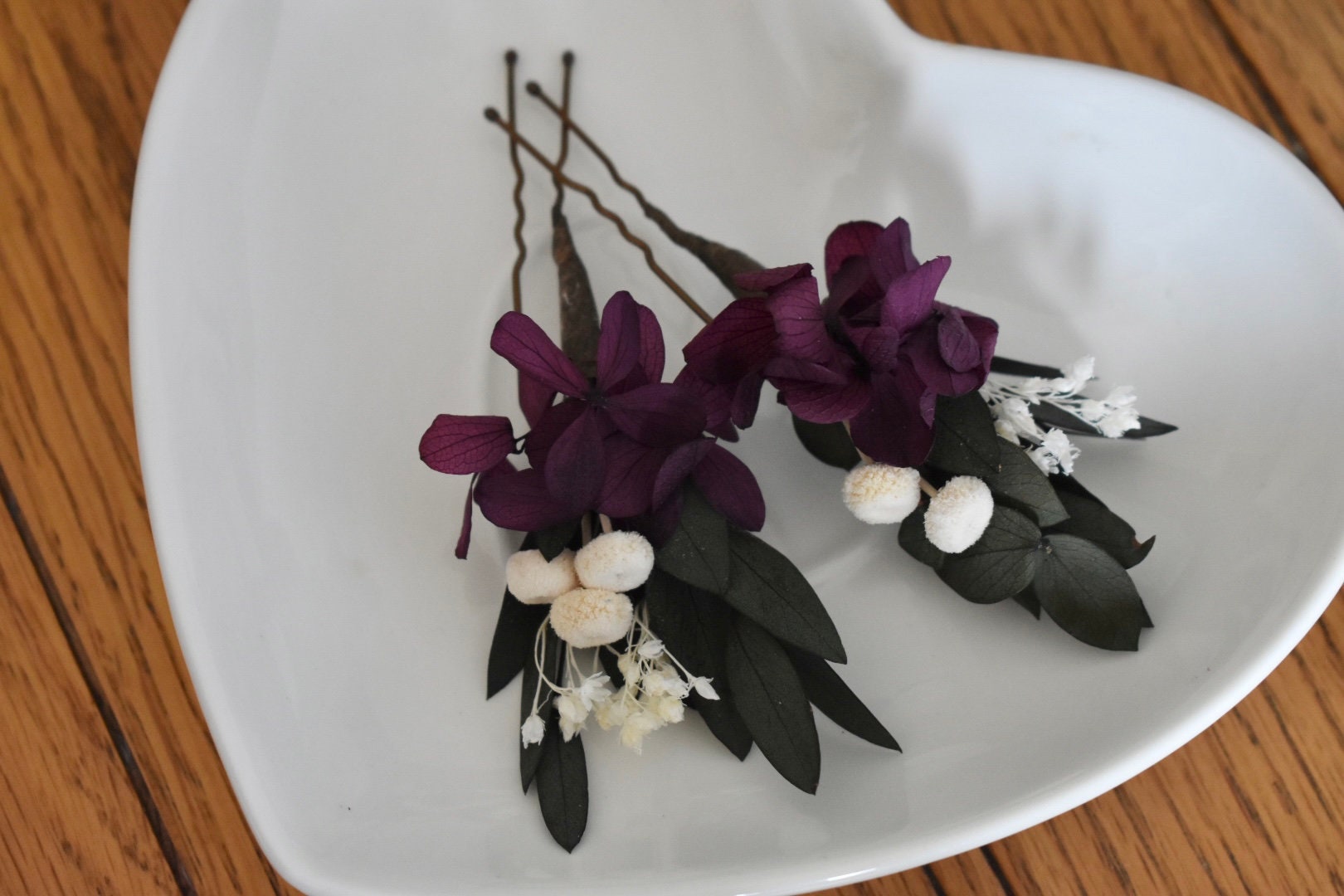 Hydrangea and eucalyptus hair pins