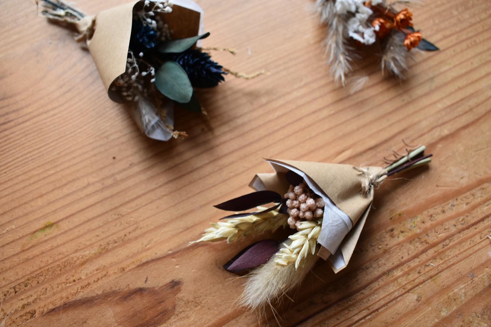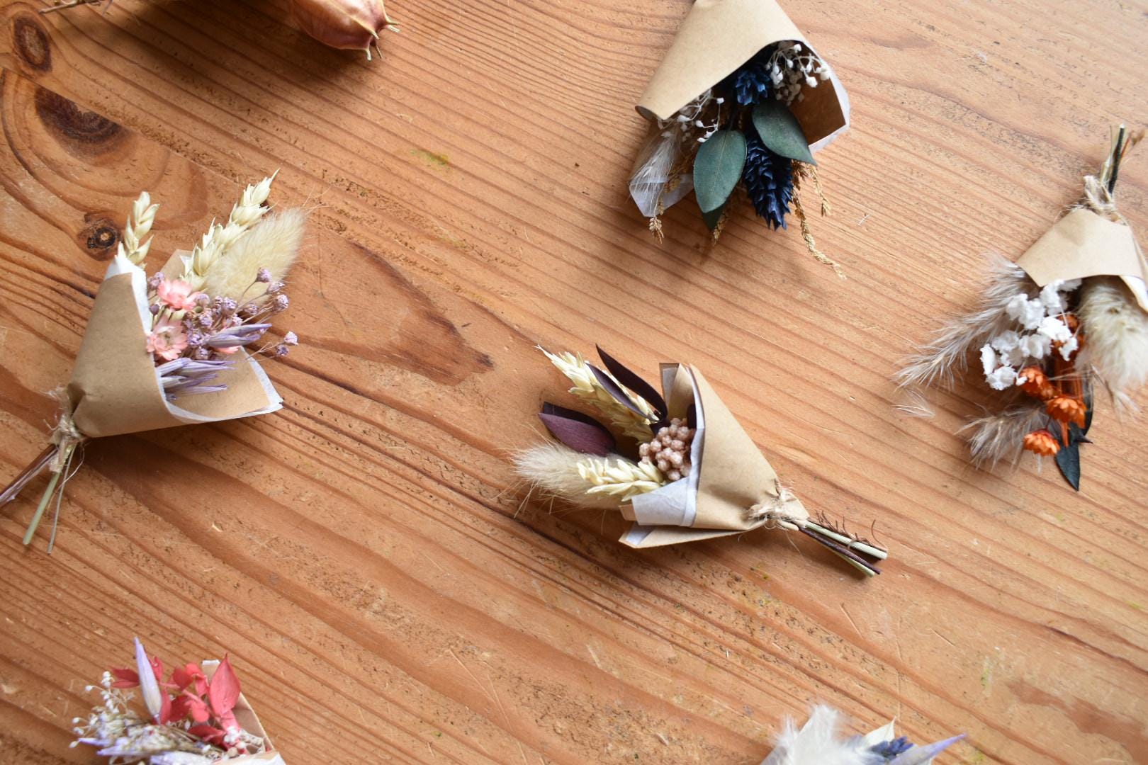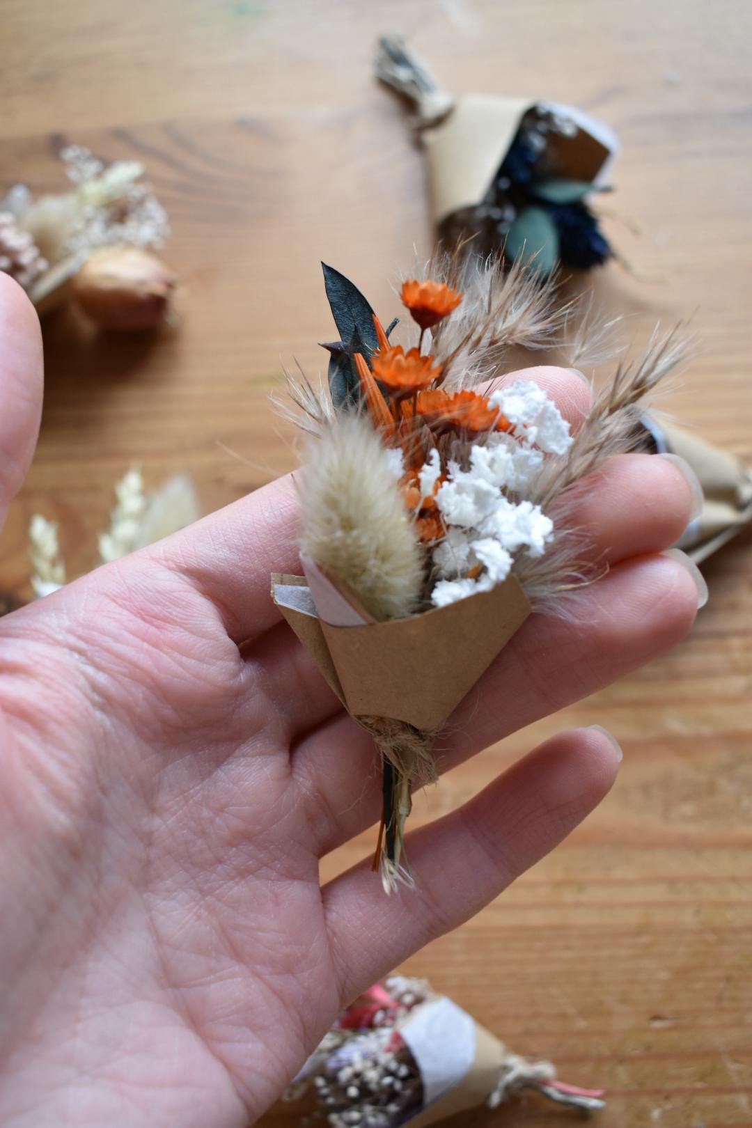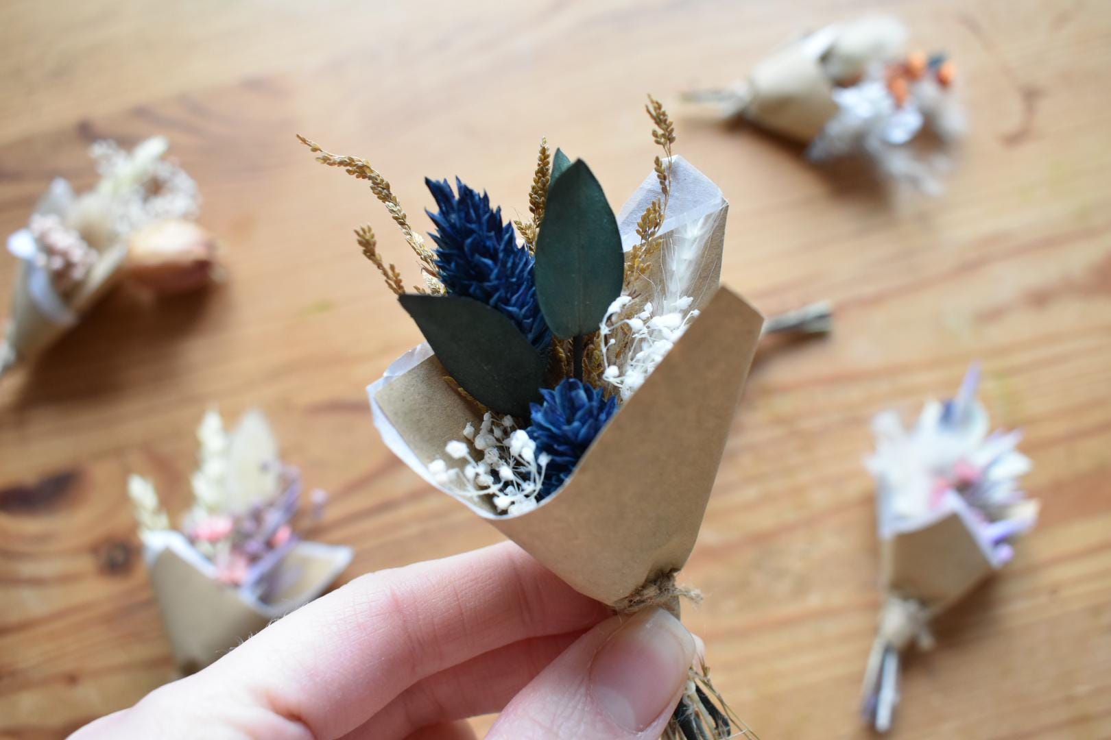 Set of 3 mini dried flower bouquets. Each bouquet measures between 4-6cm wide and 7-9cm tall.
