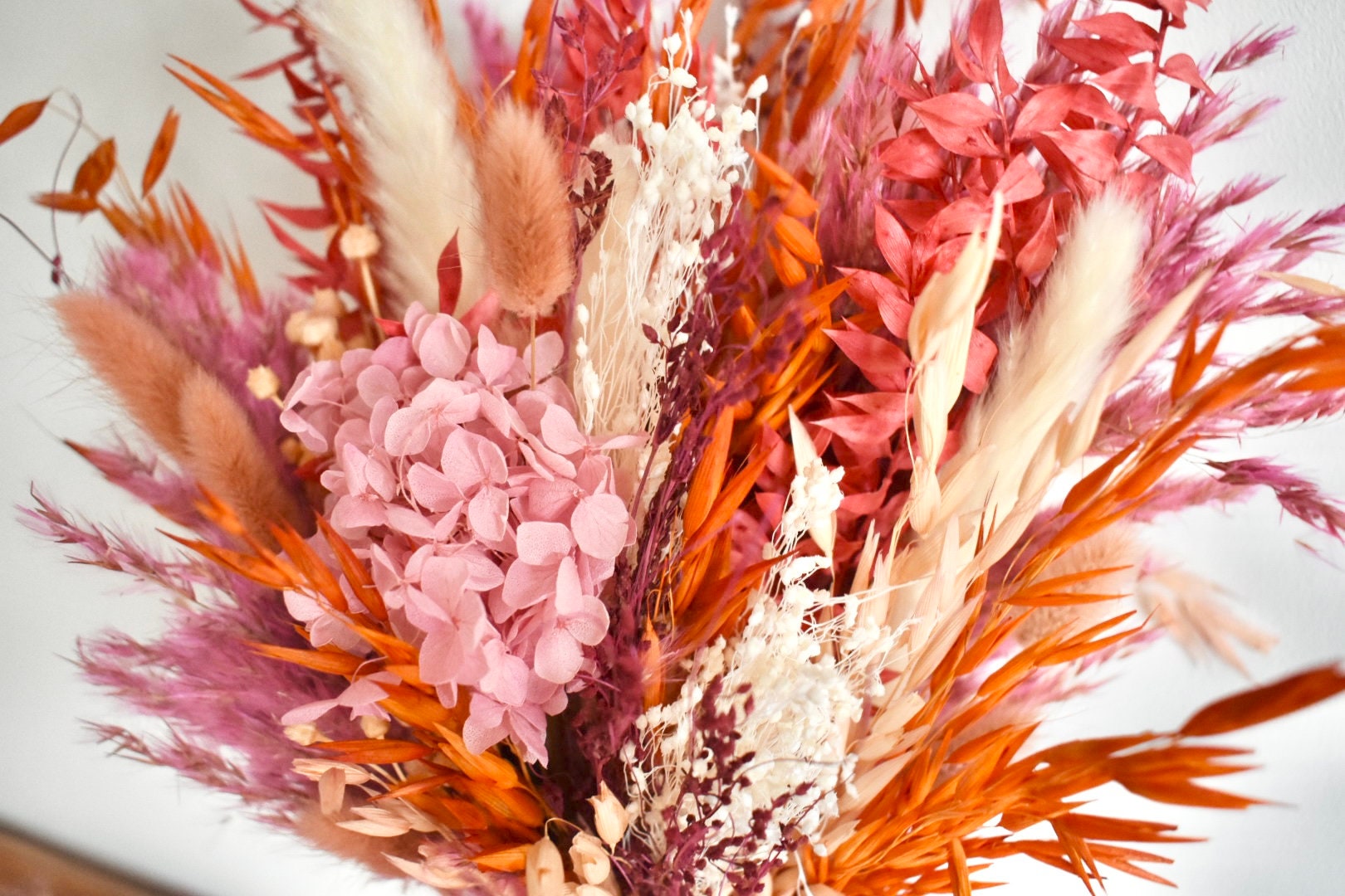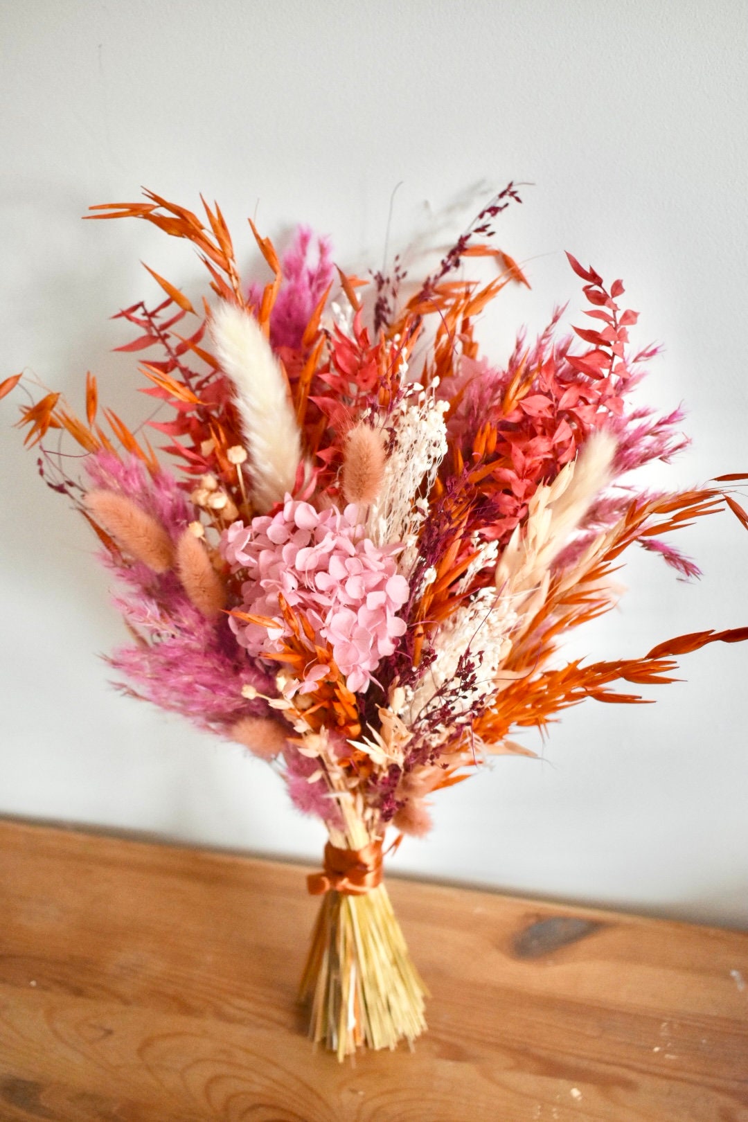 This bouquet includes pampas, oats, bunny tails, ruscus, broom bloom and hydrangea,