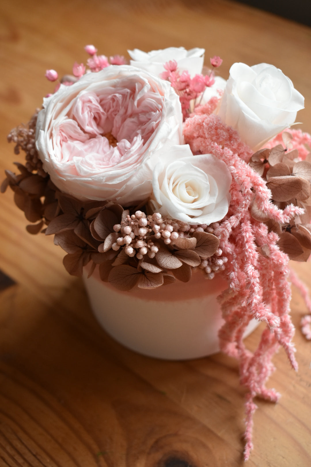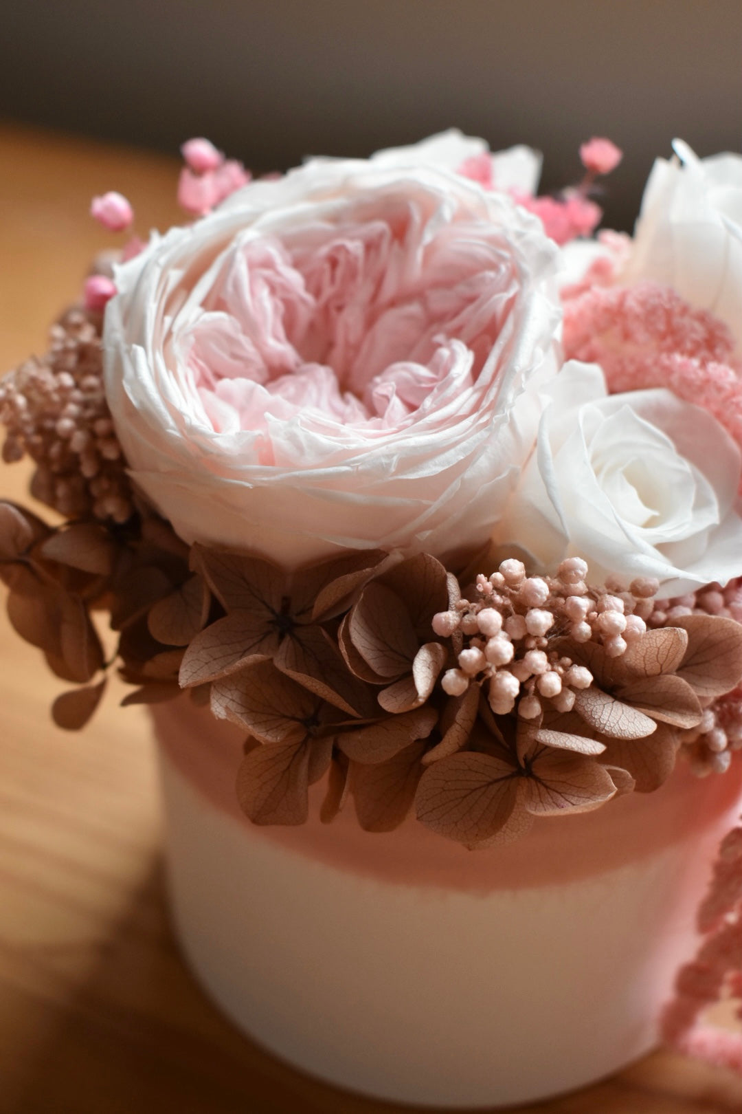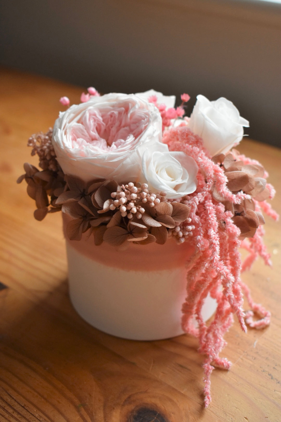 Pink preserved rose box arrangement