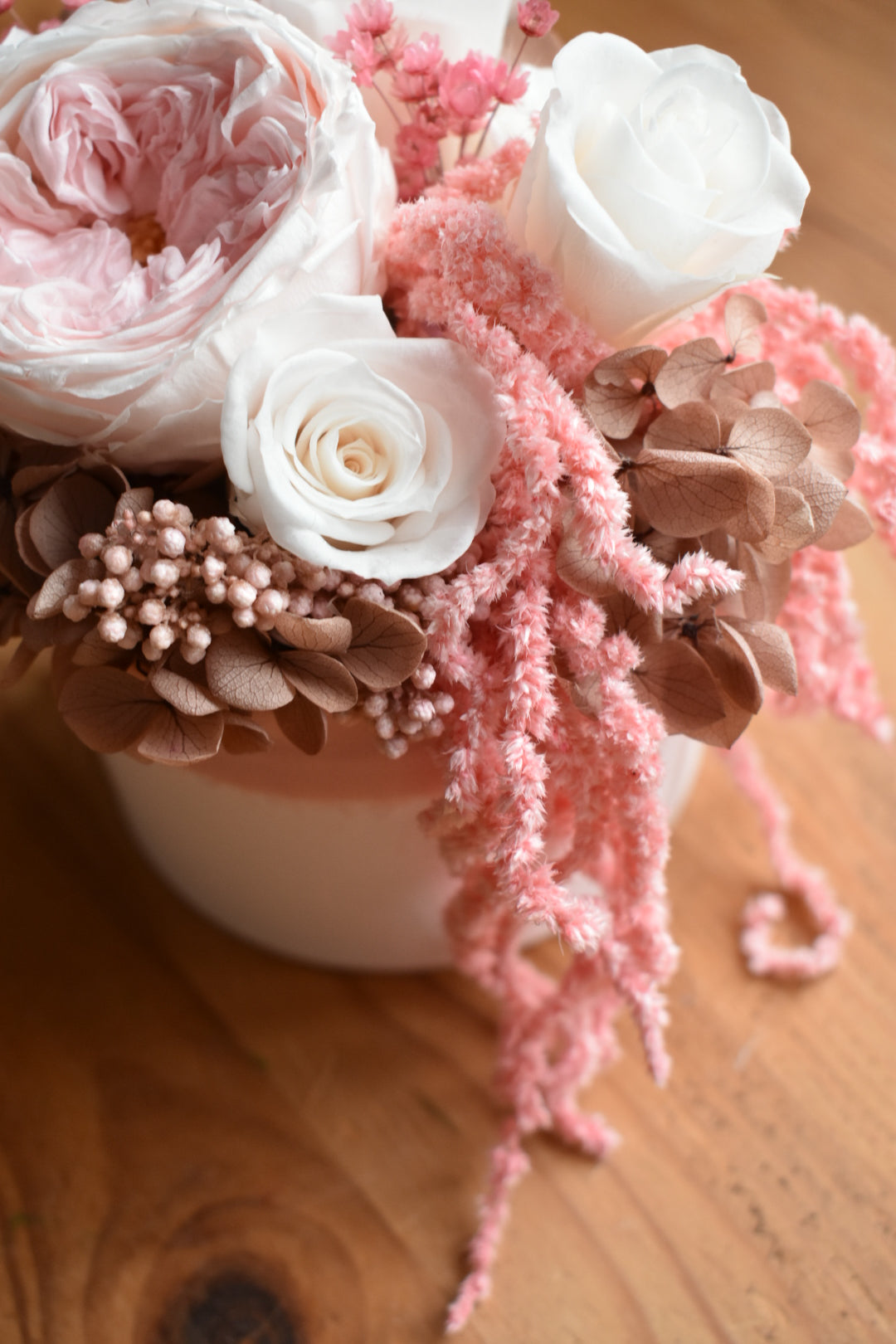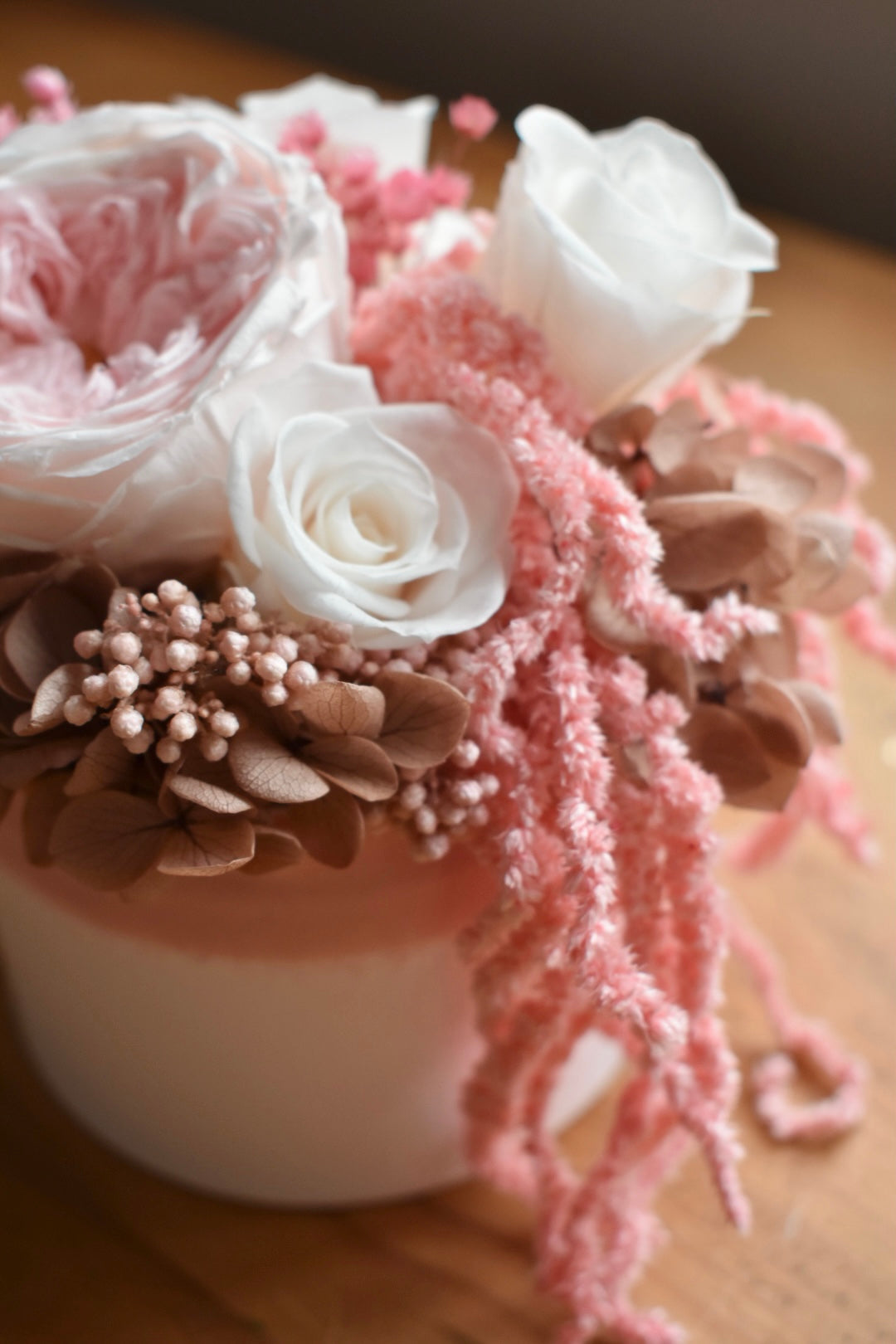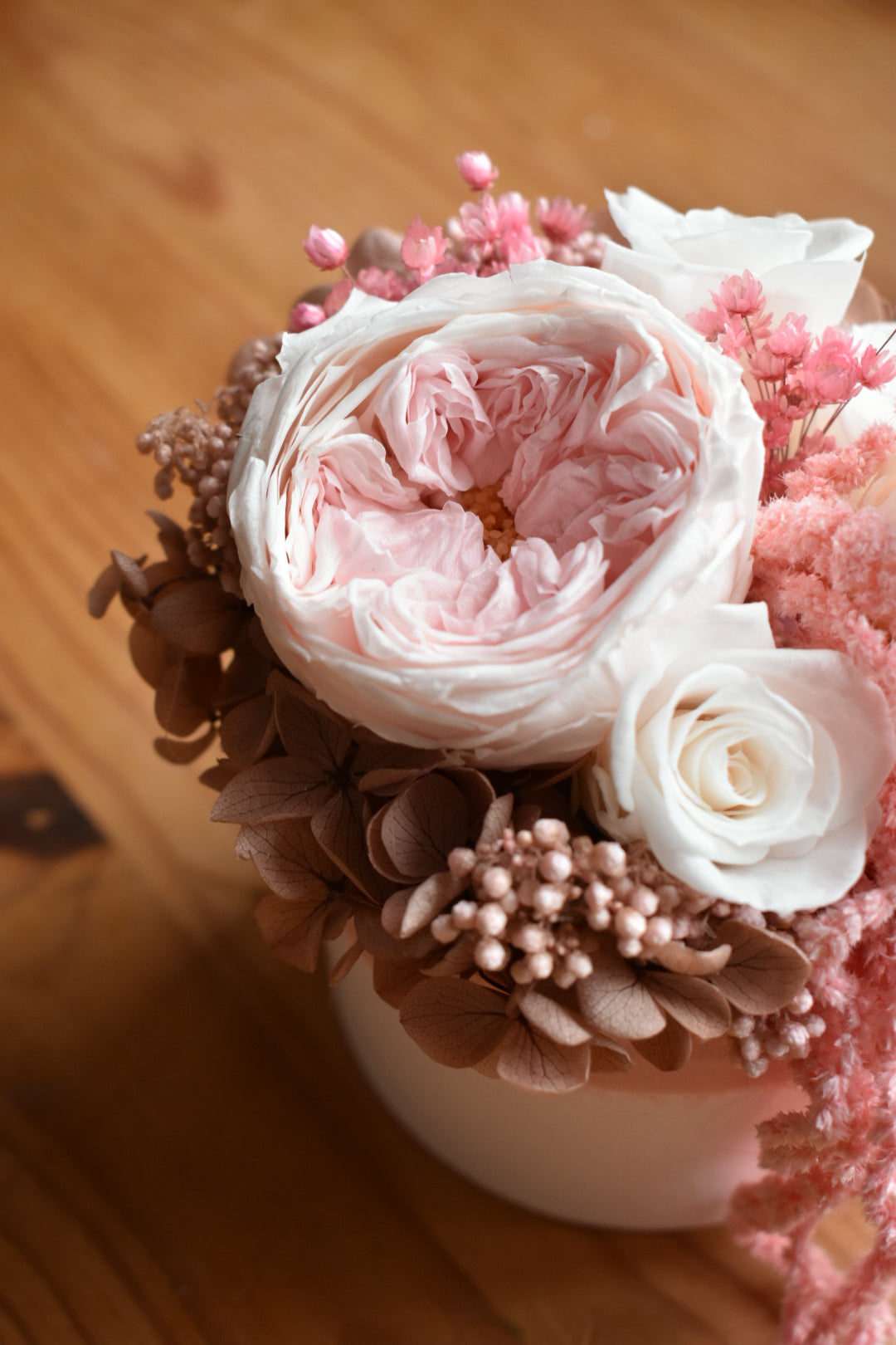 Pink preserved rose box arrangement