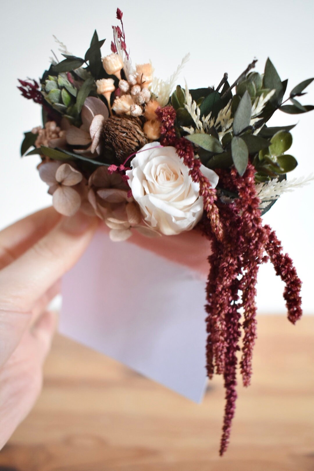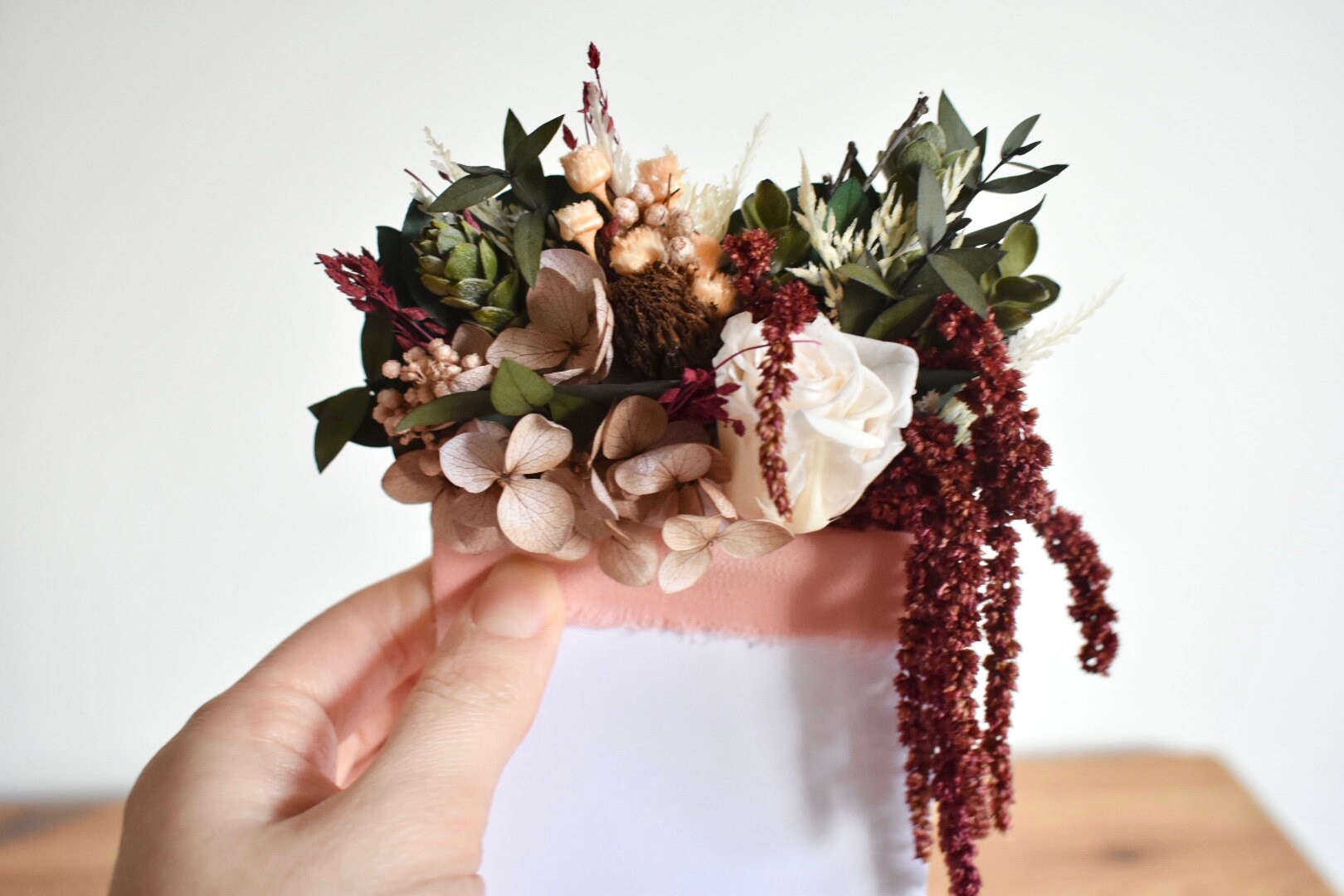 Please keep items made with dried and preserved flower dry and out of direct sunlight. I recommend keeping accessories stored in the box until you use them. More information.