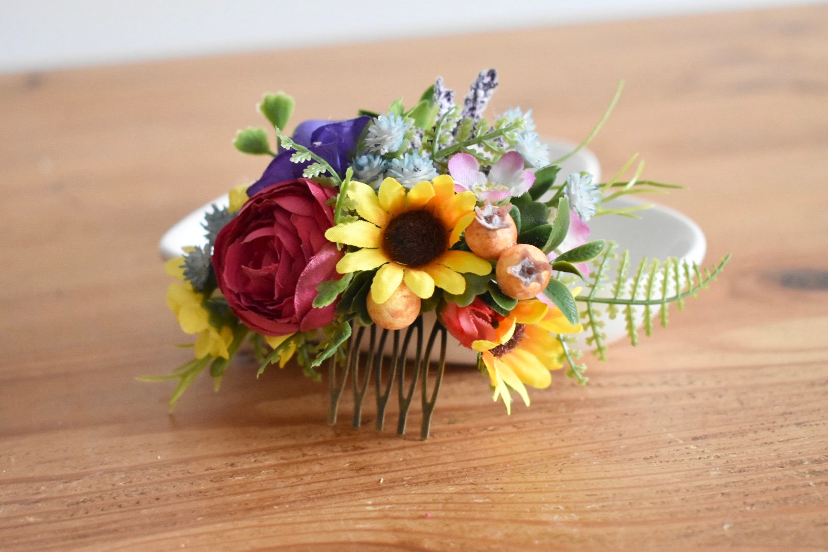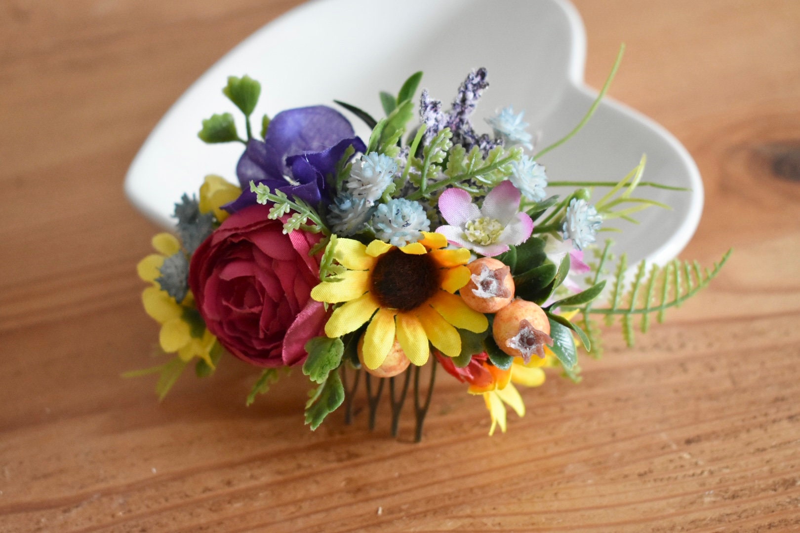 Comb measures approximately 2.5cm - flower arrangement measures approximately 8cm.