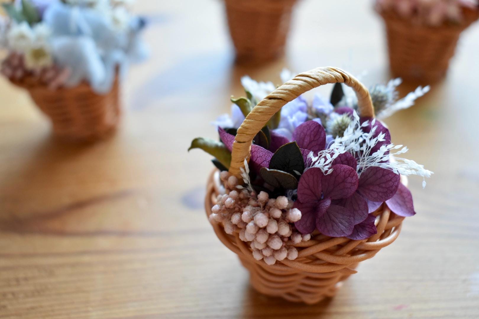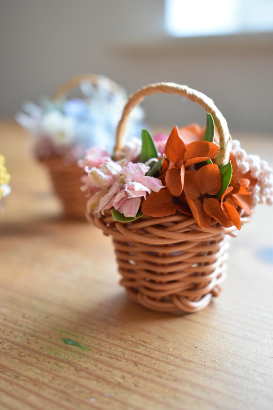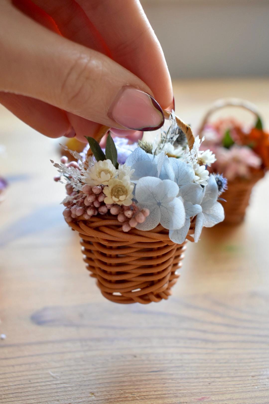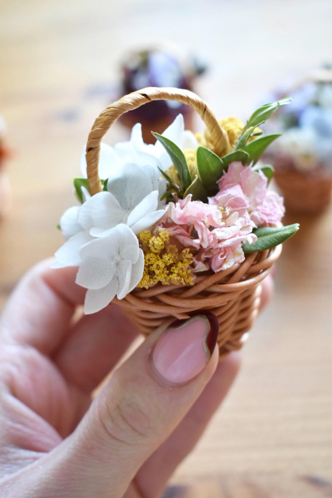 This mini flowers arrangement measures approximately 7.5cm tall and 5cm wide.